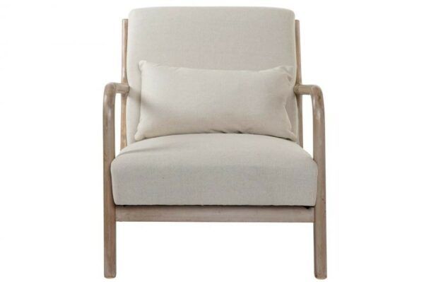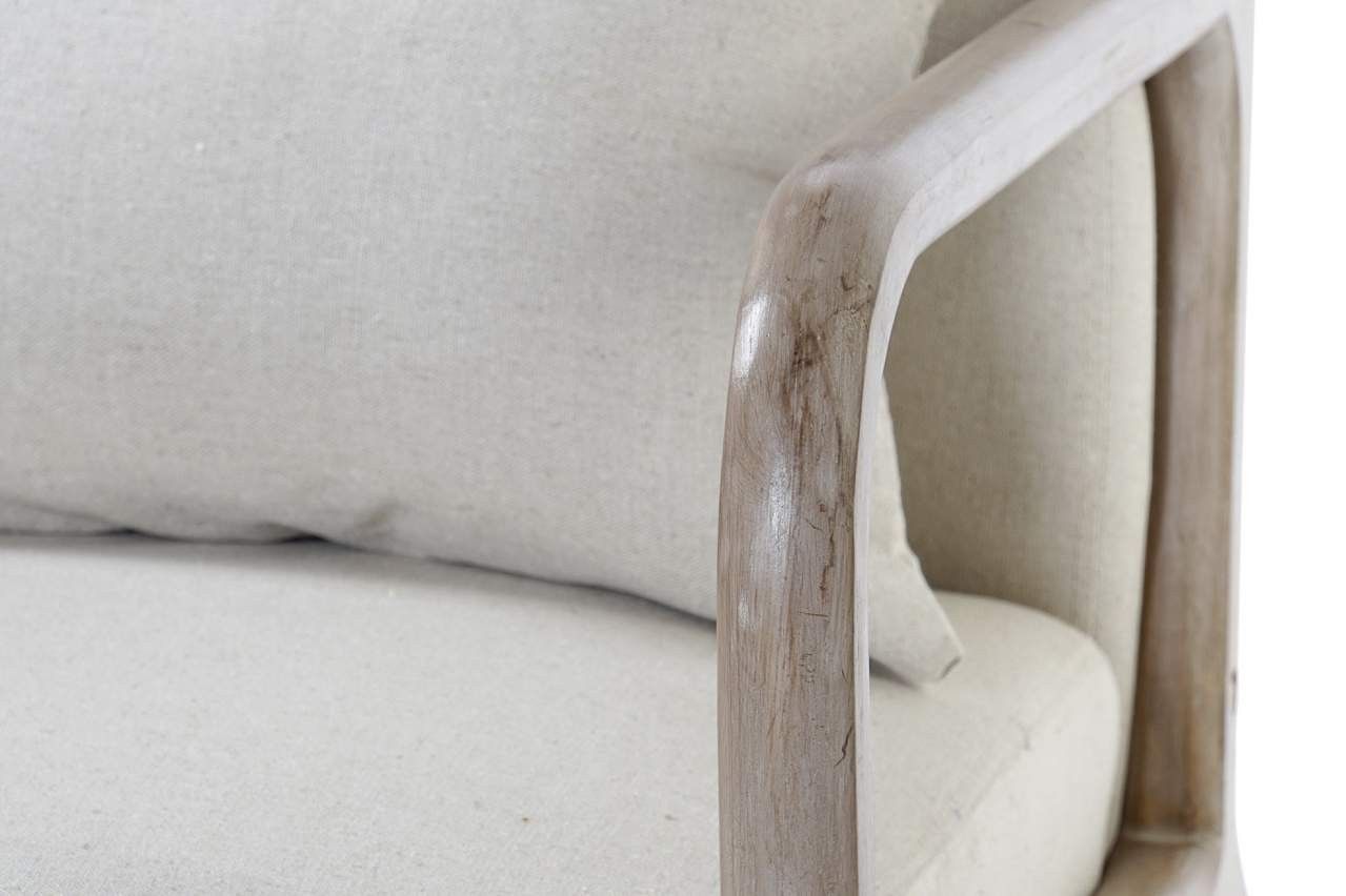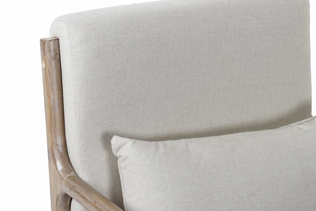 Sillón de madera natural y lino en color beige. Viene incluido con el cojín, también de lino.