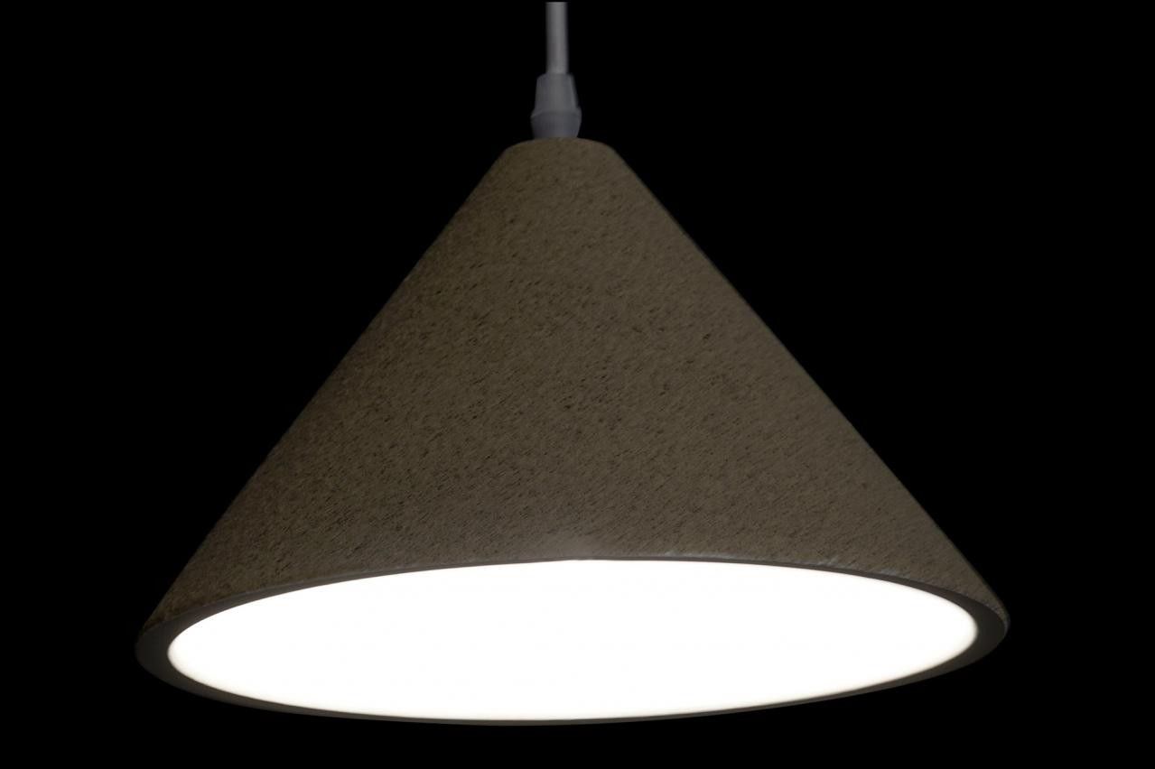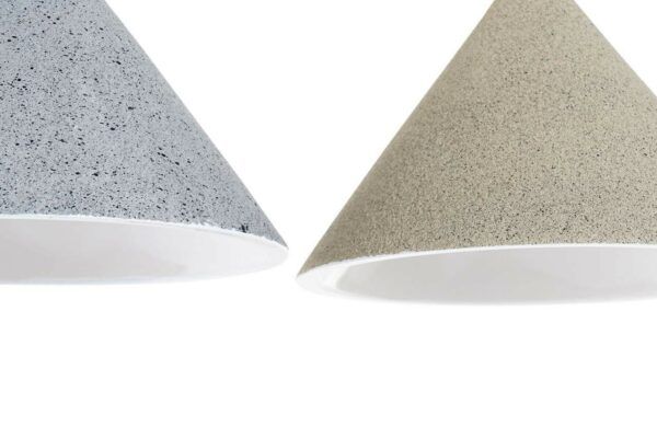 Lámpara colgante hecha de arcilla en dos colores: gris o beige.