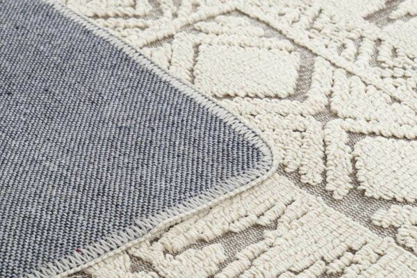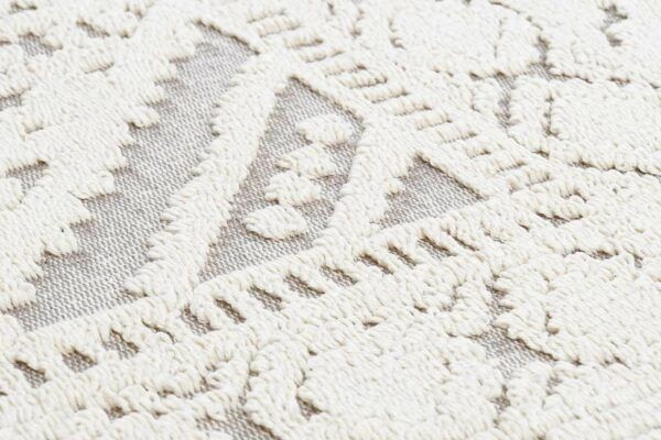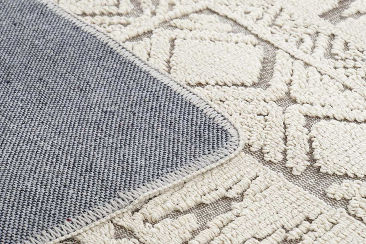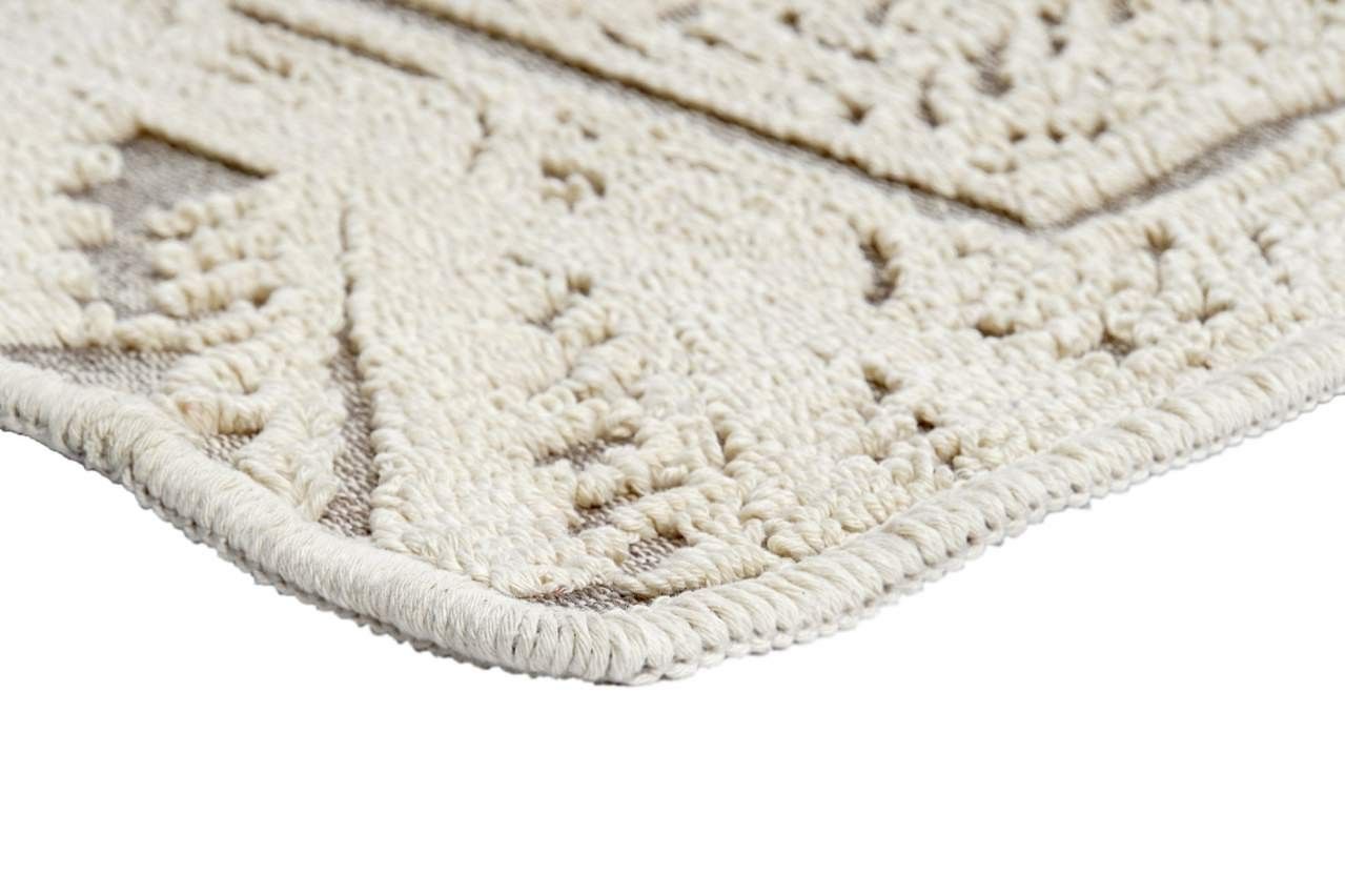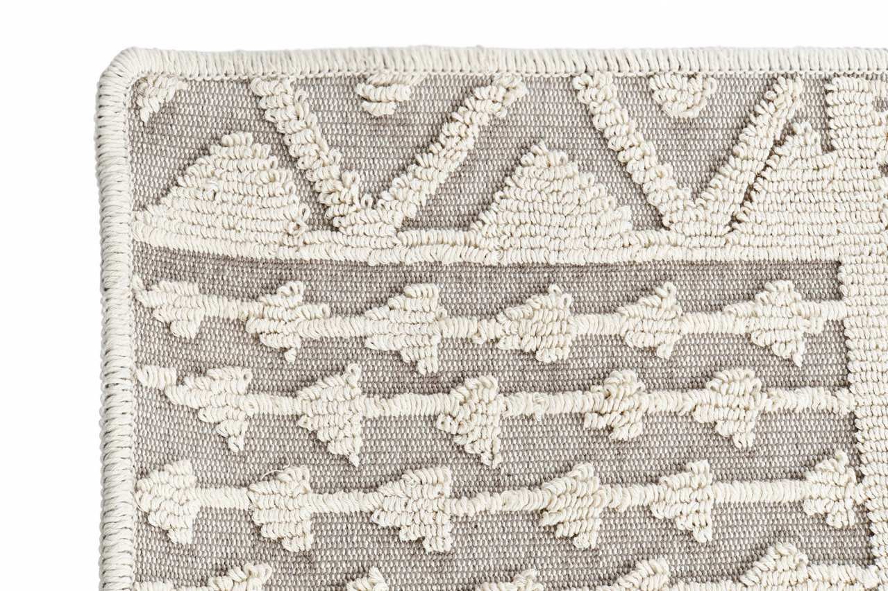 Alfombra de algodón con estampado jacquard en tonos beige.
