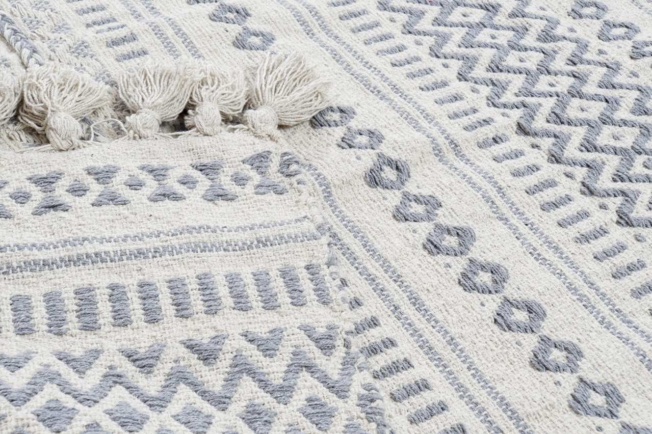 Alfombra de algodón con estampado en todos azul grisáceo.