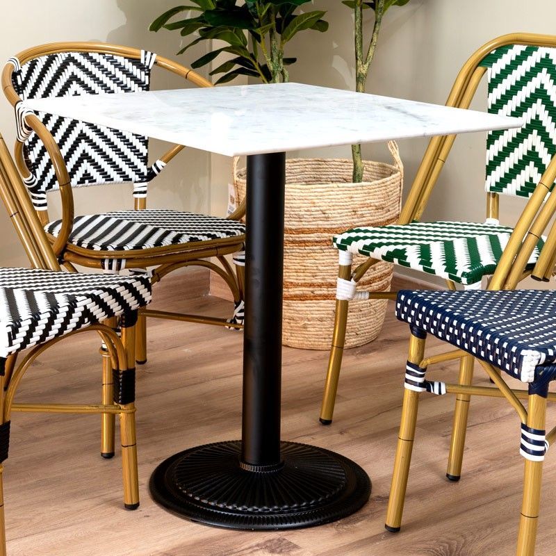 Estructura de mesa de metal negro con base redonda con estilo Vintage ideal para hostelería.