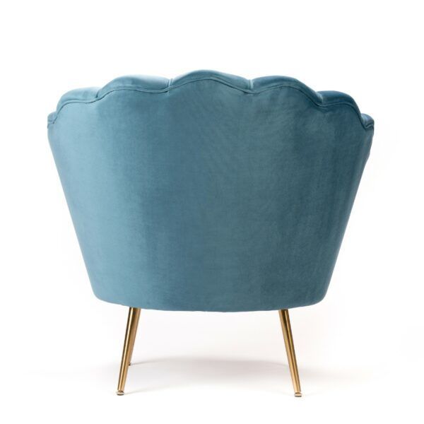 Sillón de terciopelo con estructura de madera maciza y espuma altamente elástica. Patas de acero inoxidable.