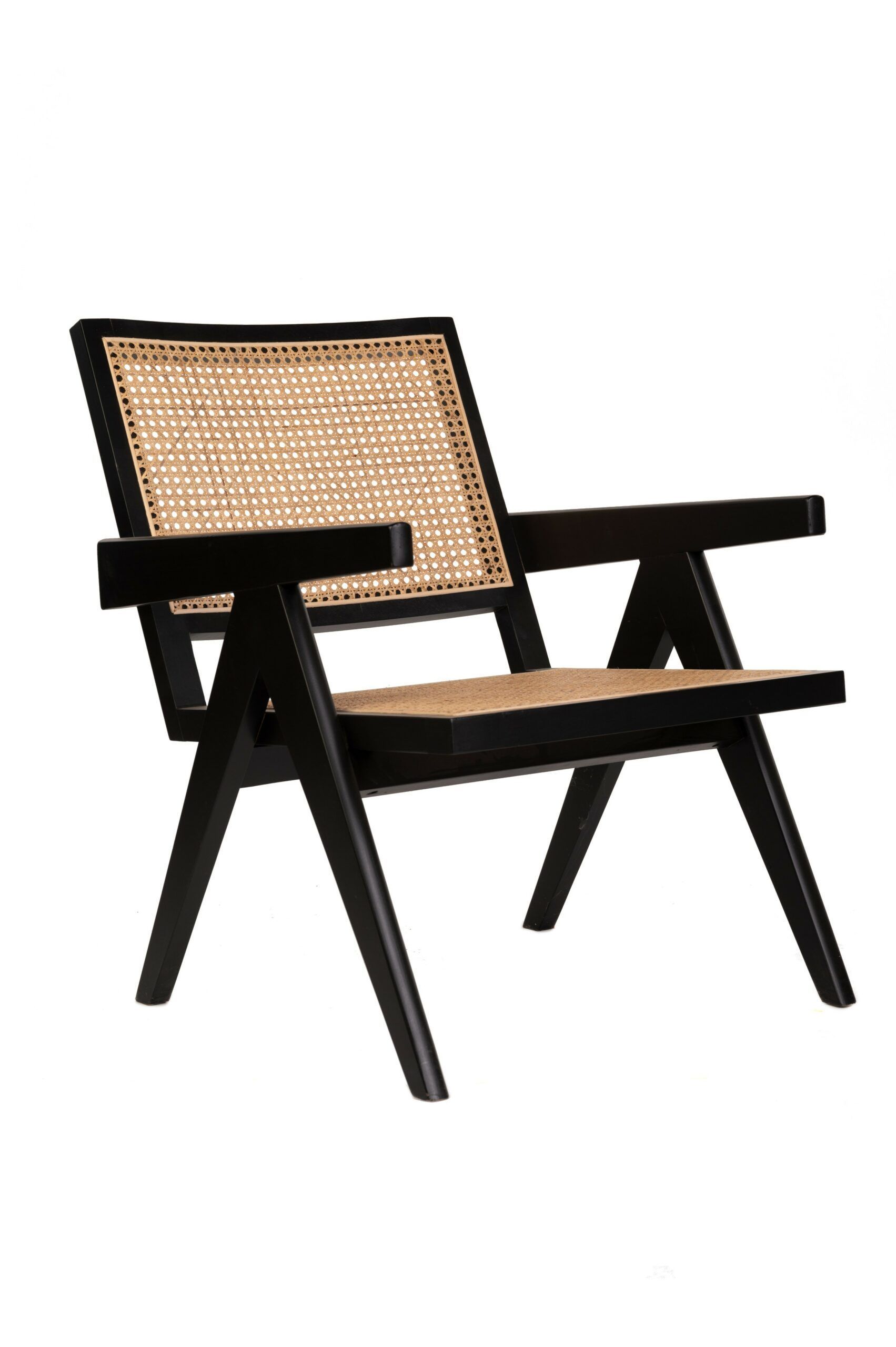 Sillón de madera de haya con asiento y respaldo de ratán