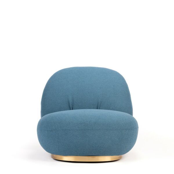 Sillón de tejido Teddy y lana bucle con estructura de madera maciza y espuma altamente elástica. Base giratoria de acero inoxidable.