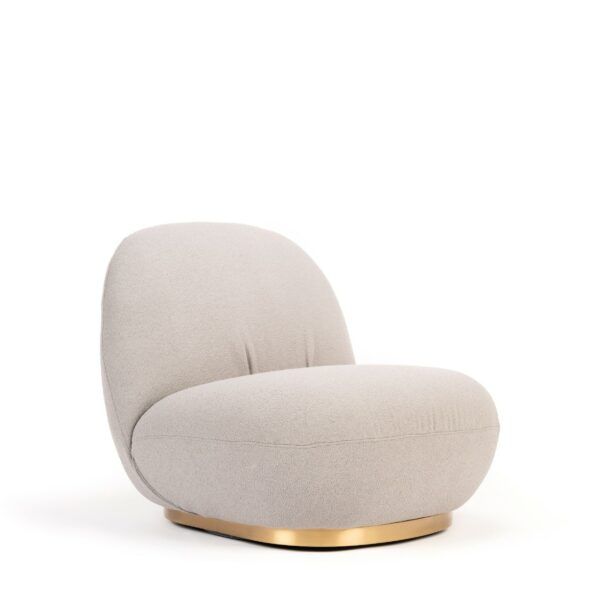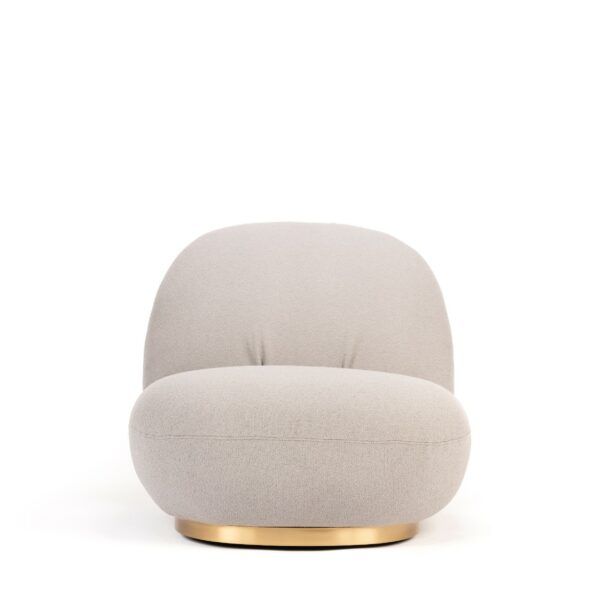 Sillón de tejido Teddy y lana bucle  con estructura de madera maciza y espuma altamente elástica. Base giratoria de acero inoxidable.