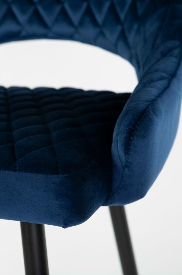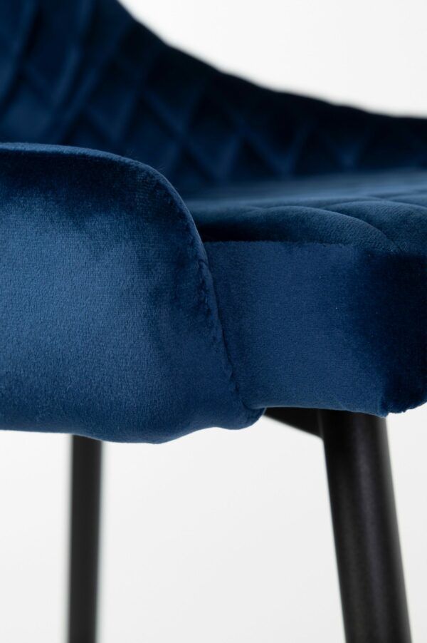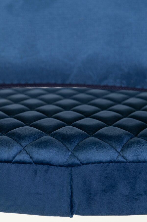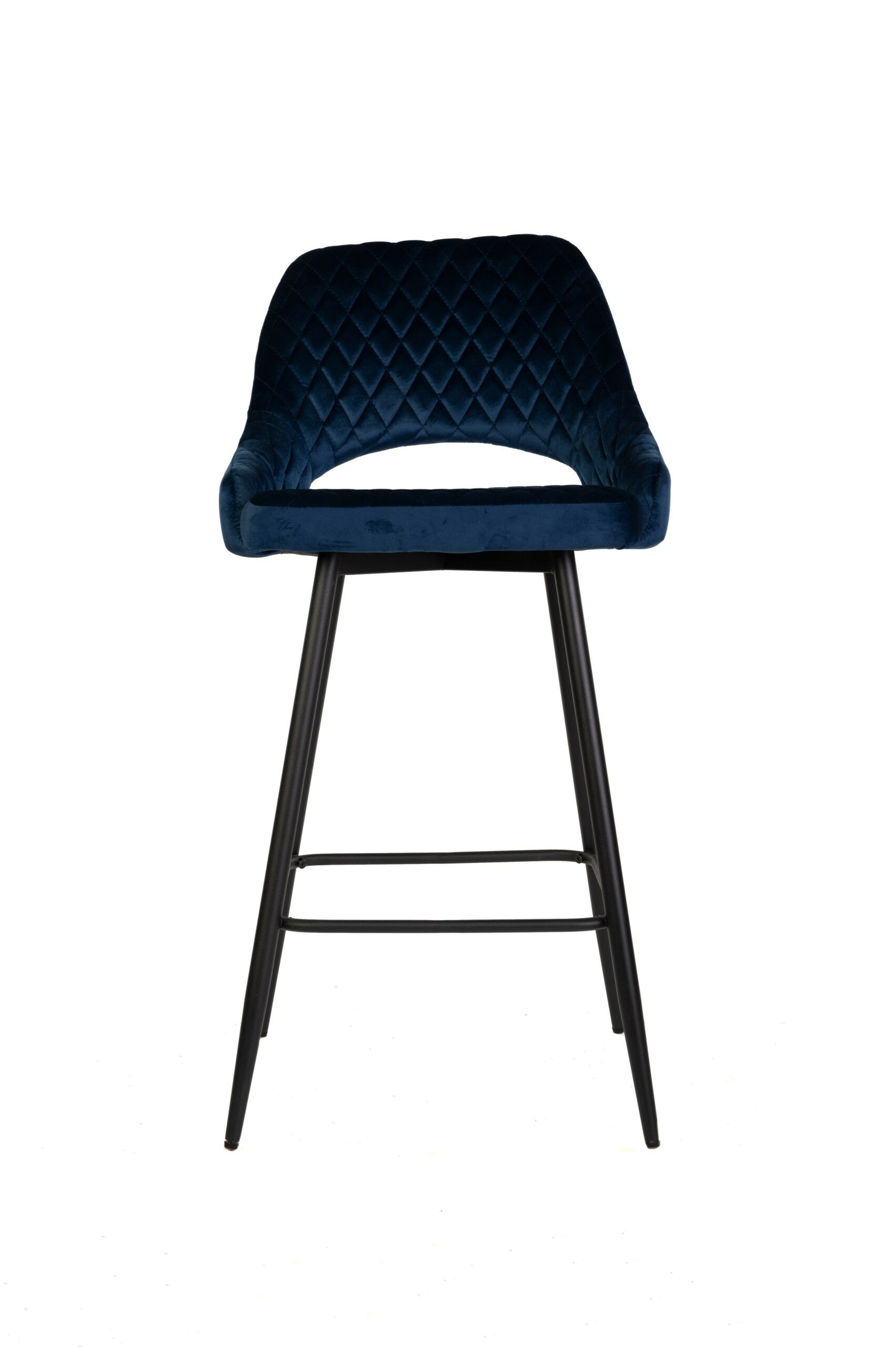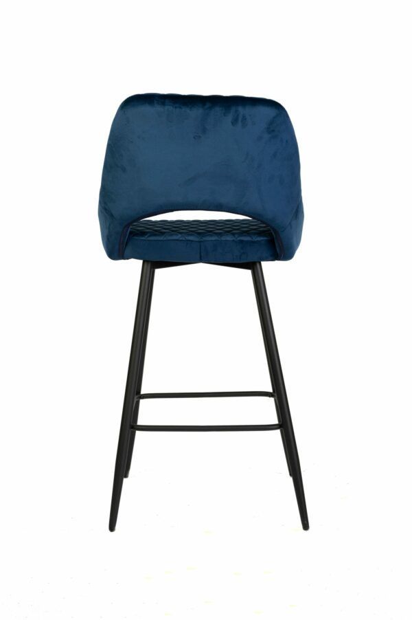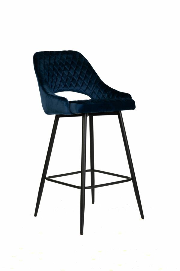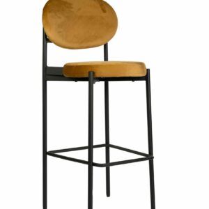Taburete de terciopelo con placa interior de metal y patas metálicas con acabado de pintura en polvo.