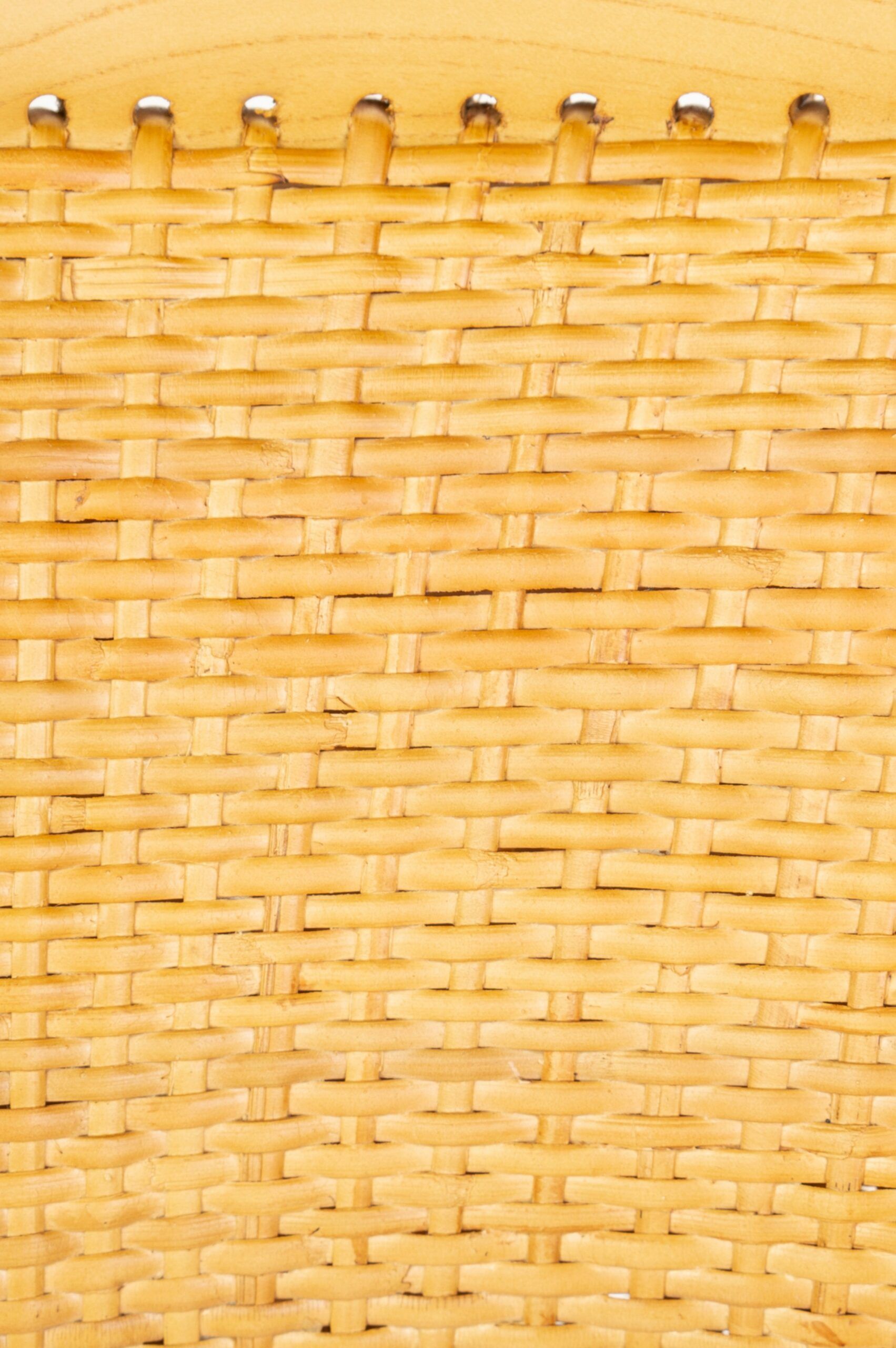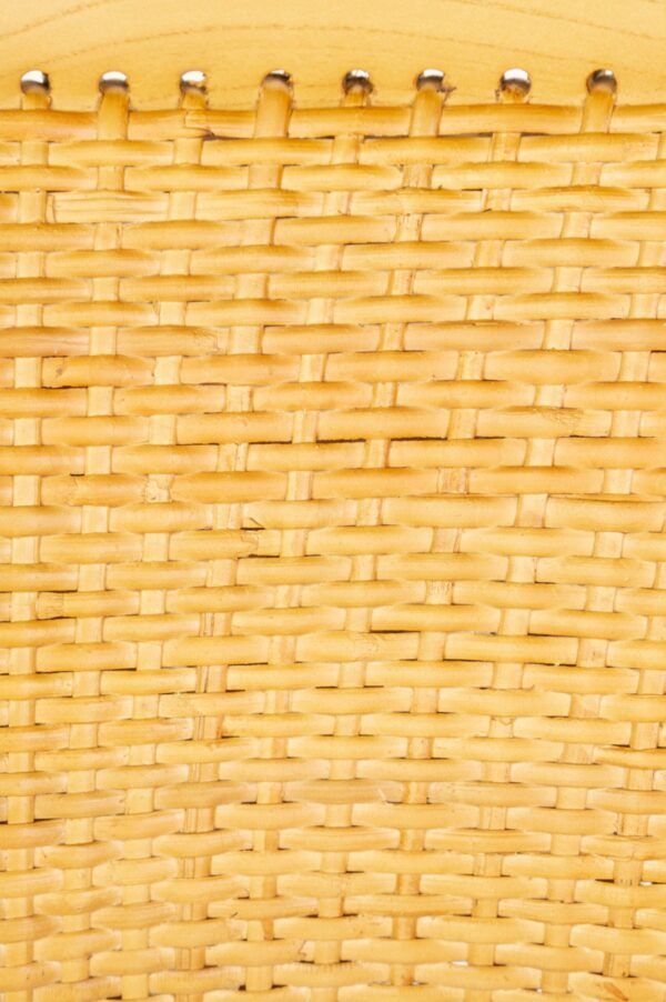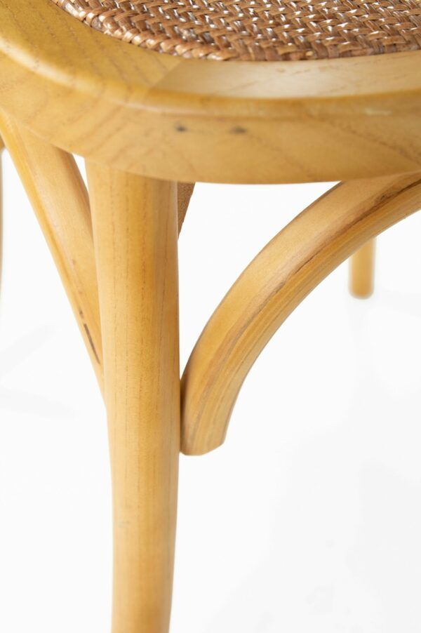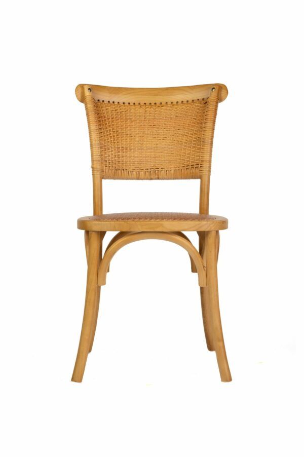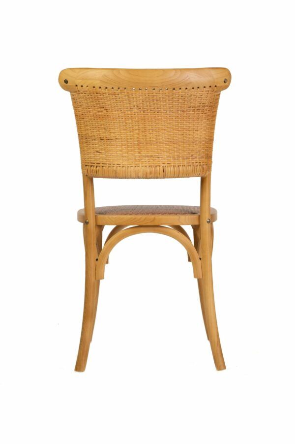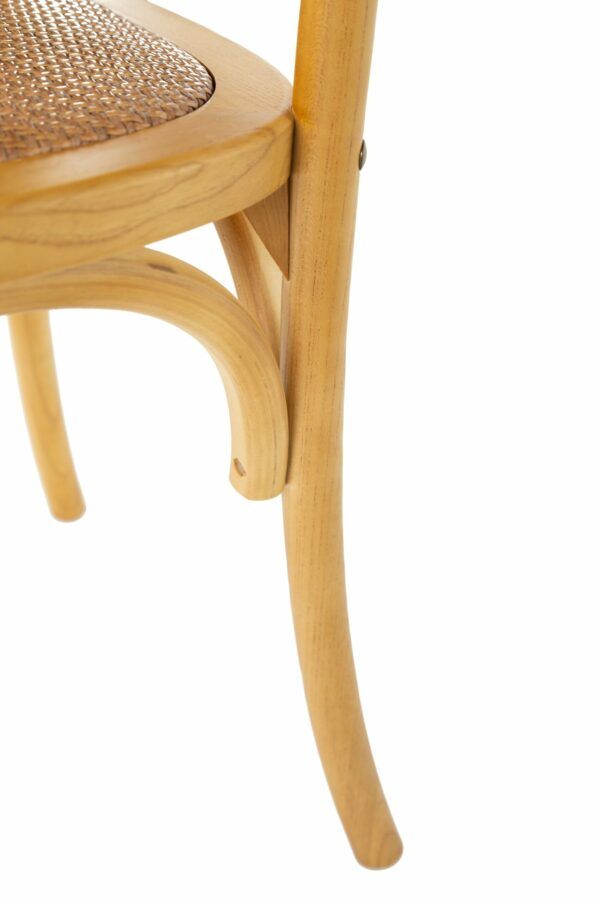 Silla de madera (madera de olmo) respaldo de rejillas con asiento de ratán tejido con orificios en color de madera estilo Alpino