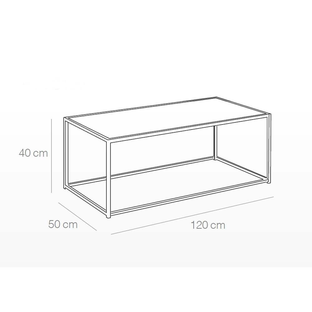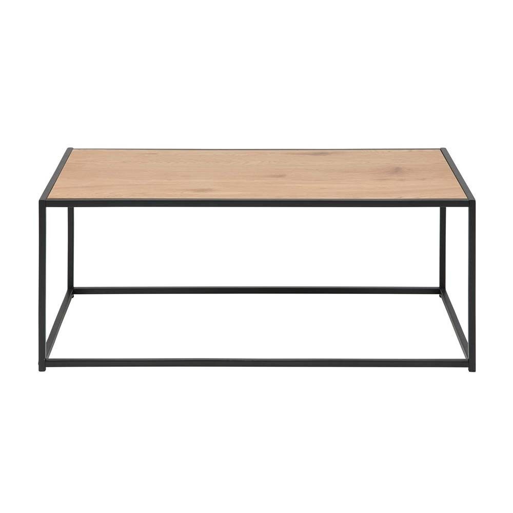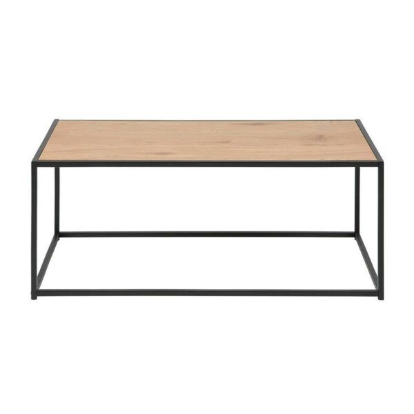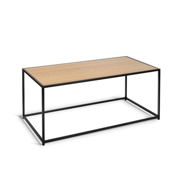 Mesa de Centro con estructura fabricada en metal con acabado en negro. Tapa fabricada en MDF recubierta con un contrachapado de color roble.