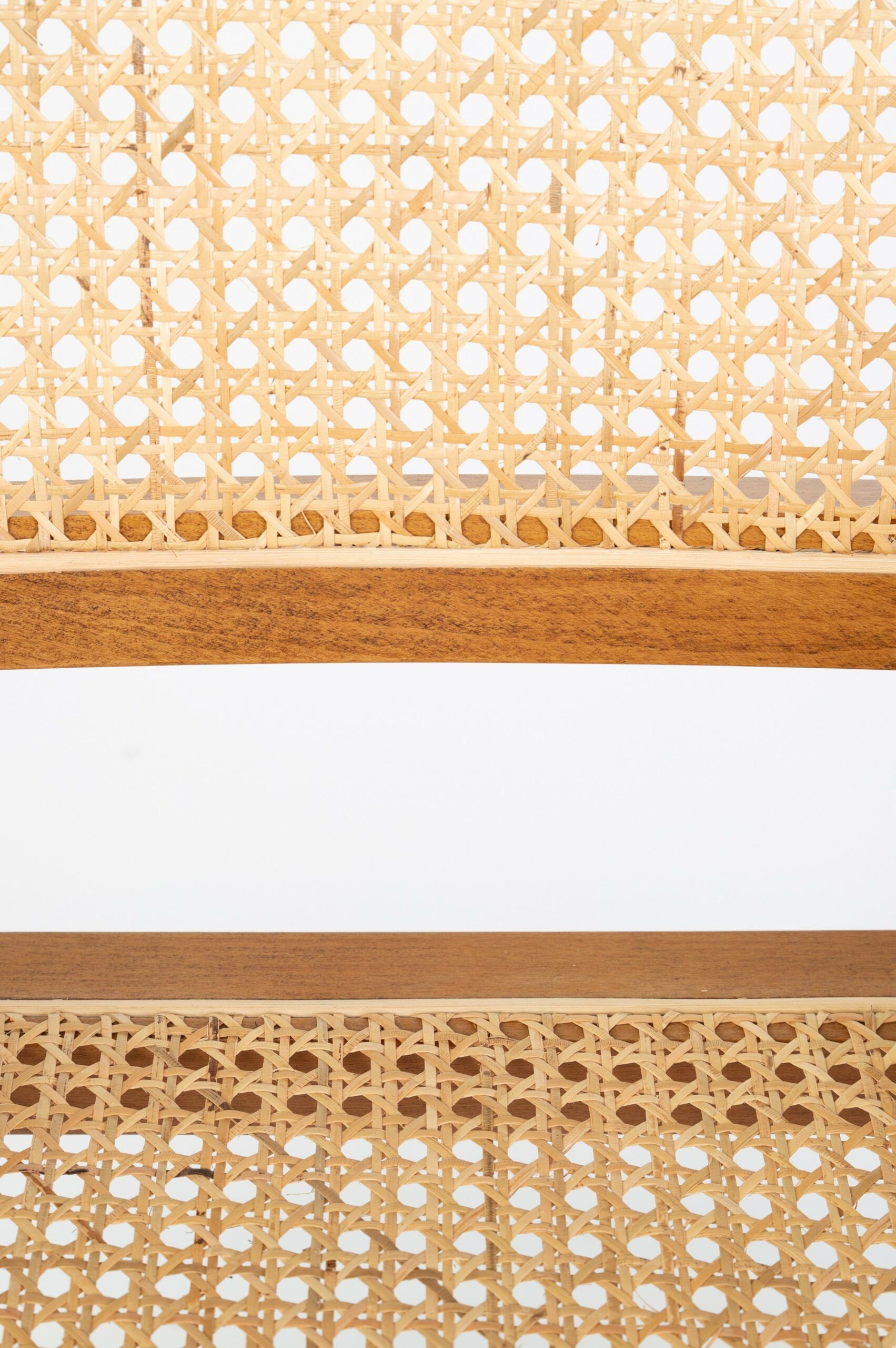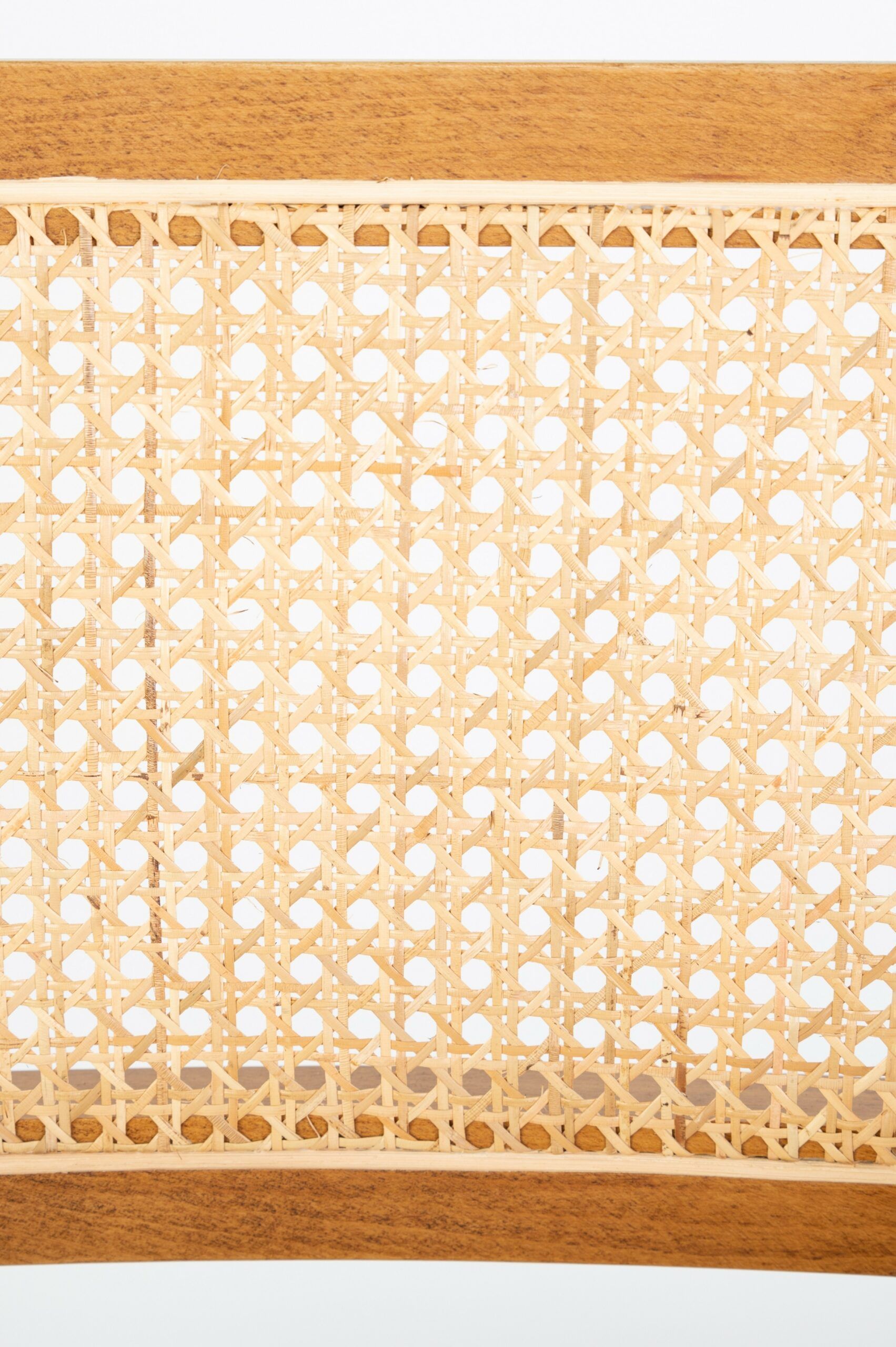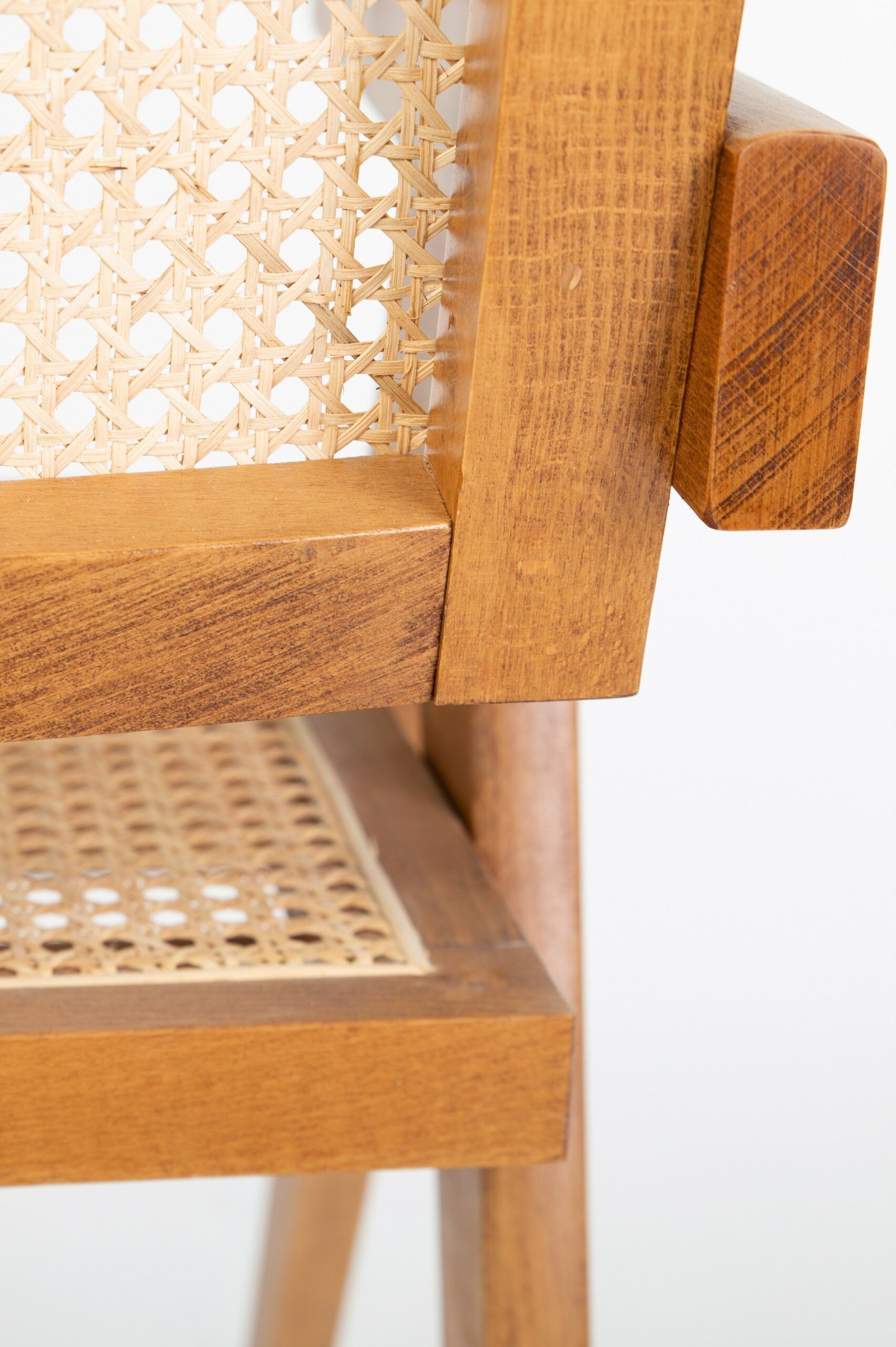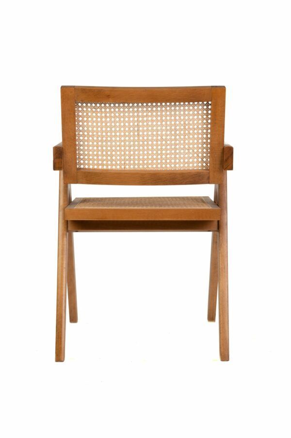 Sillón de madera de haya con asiento y respaldo de ratán, perfecto para interiores.