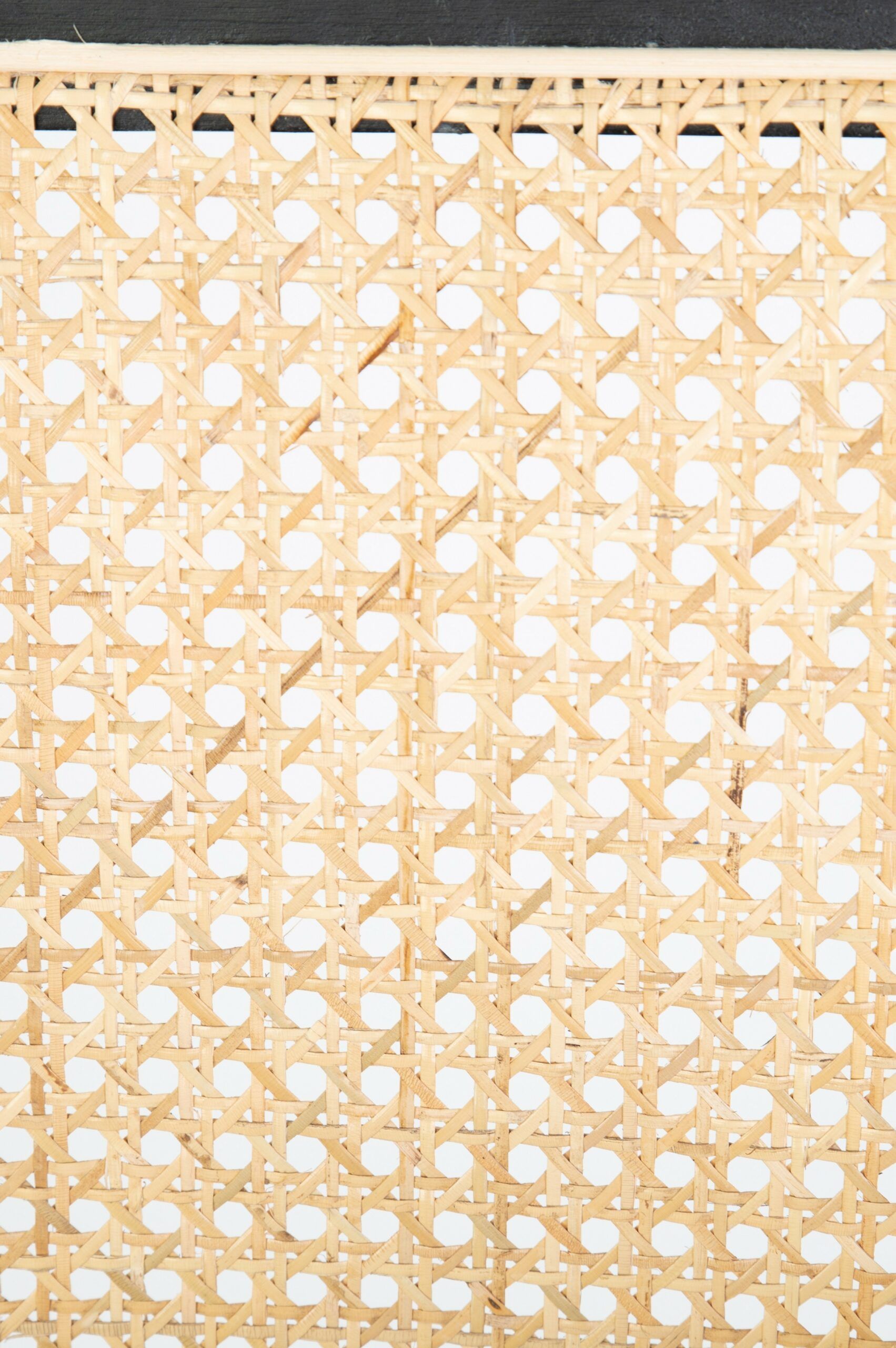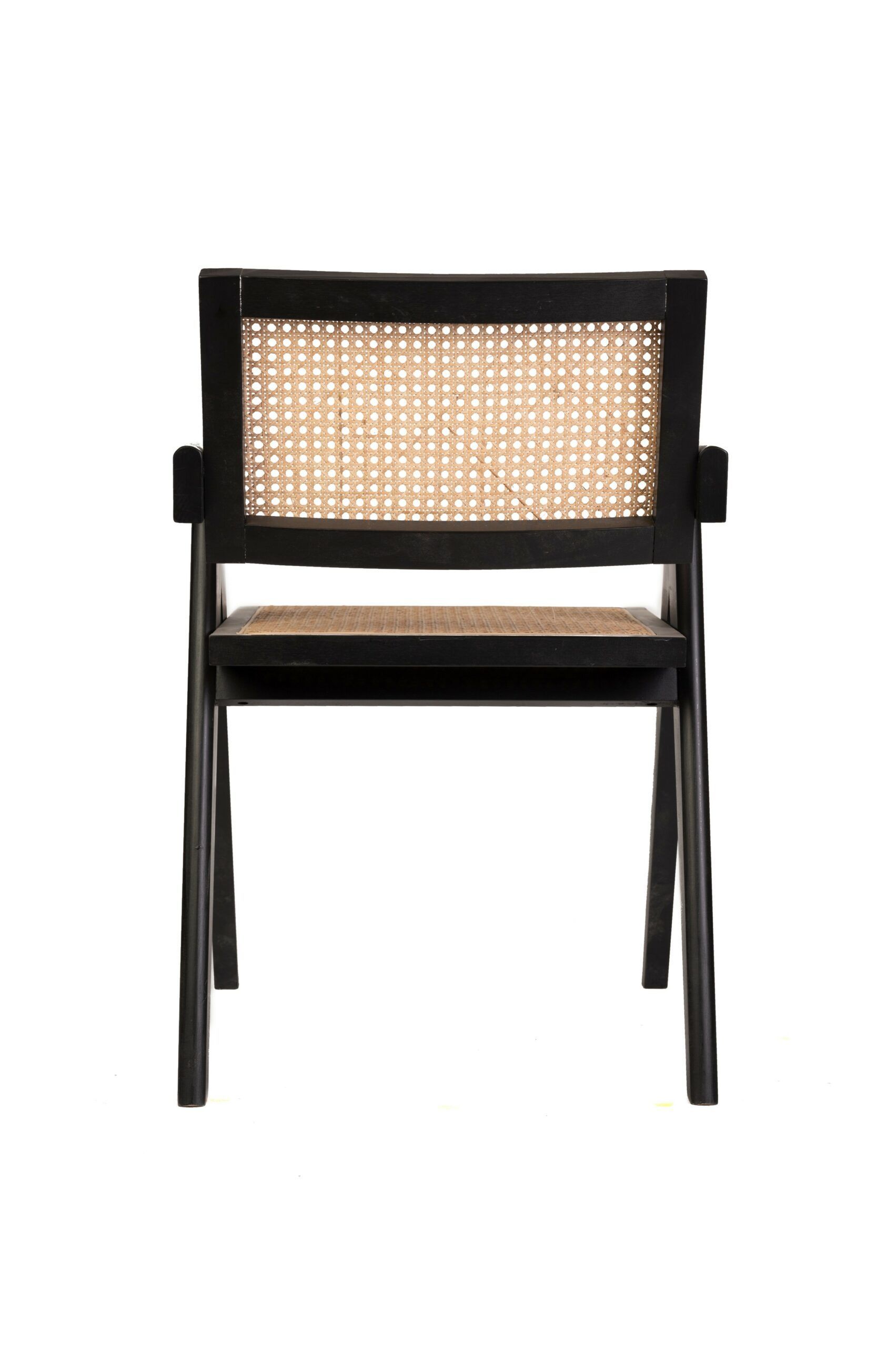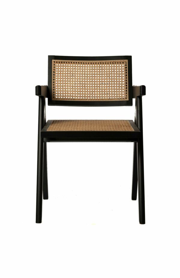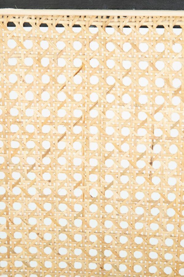 Sillón de madera de haya con asiento y respaldo de ratán, perfecto para interiores.