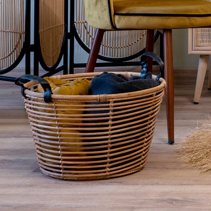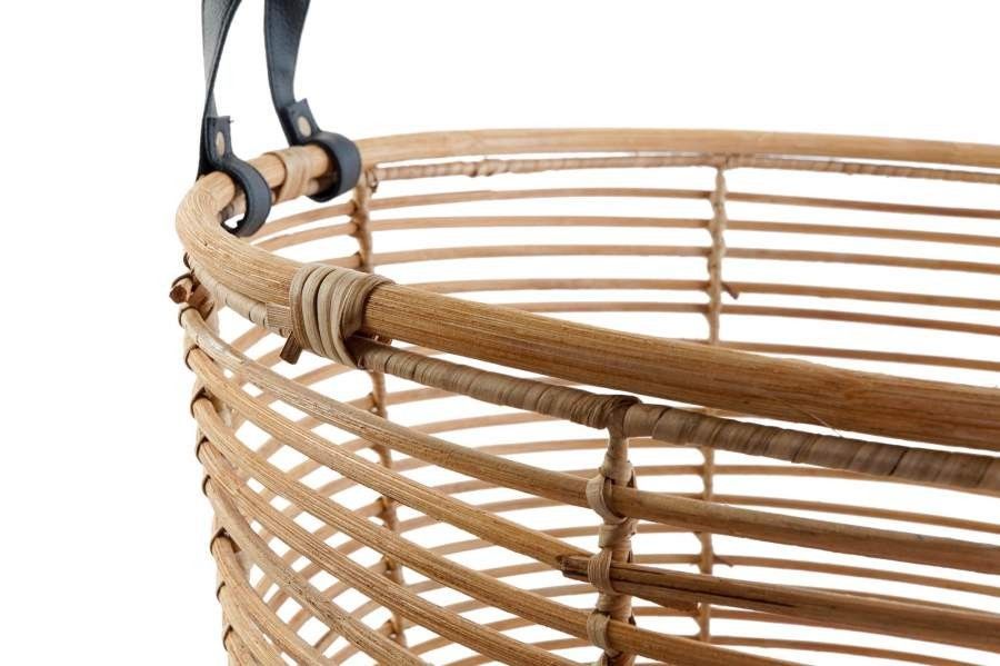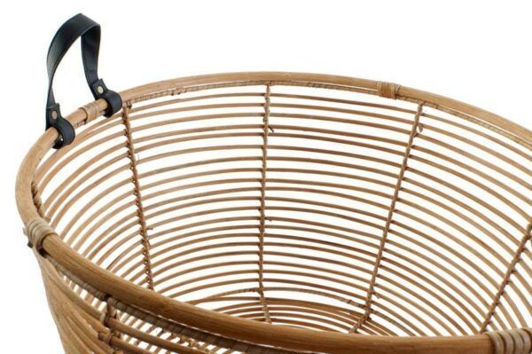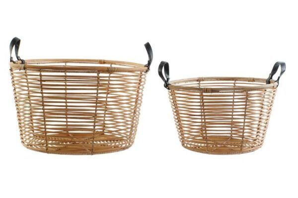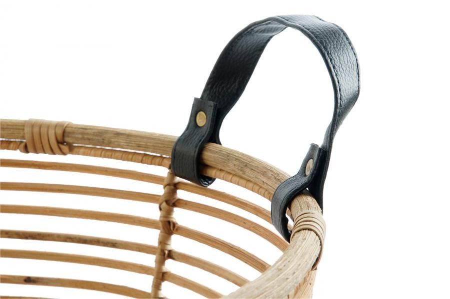 Set de 2 cestas de ratán natural con asas de polipiel en color negro.