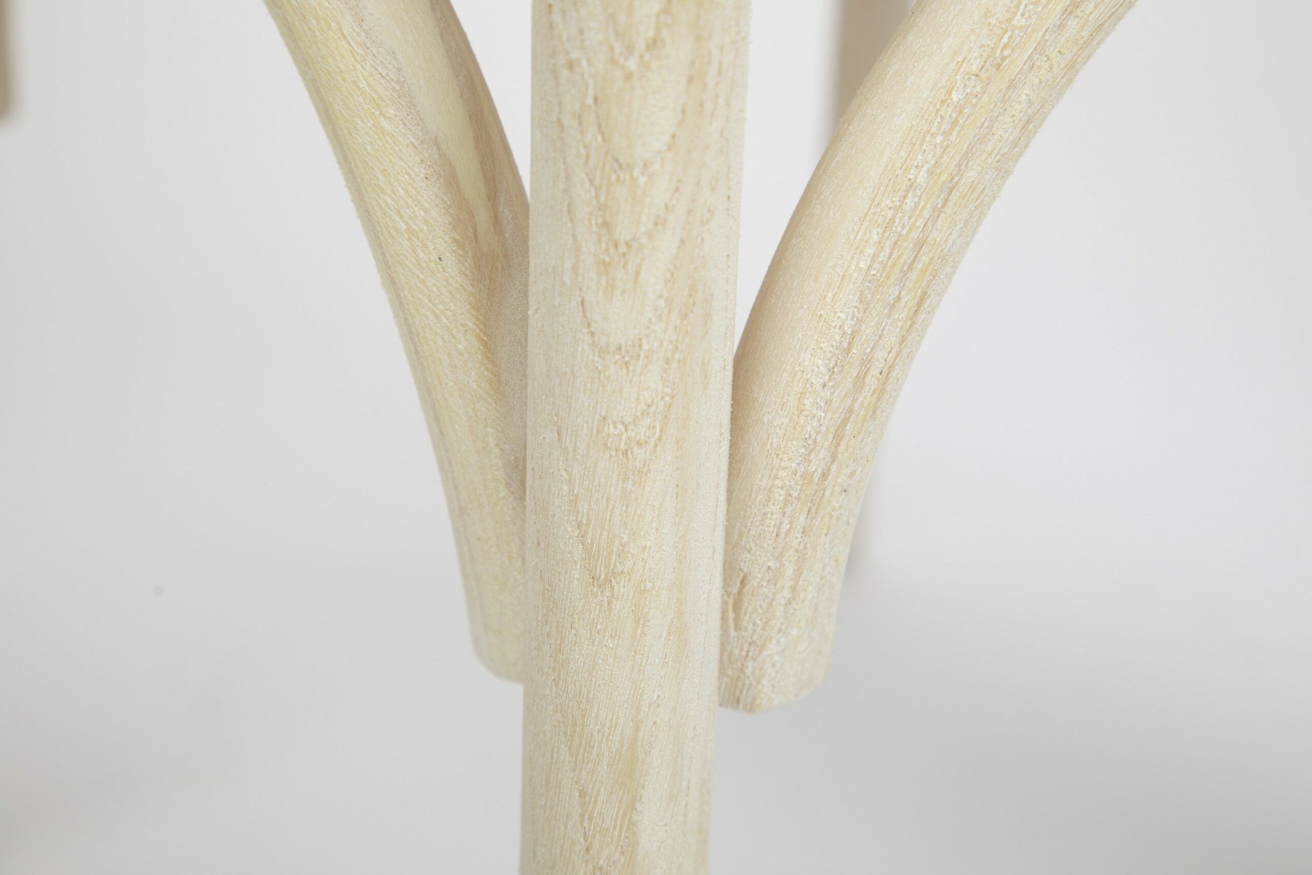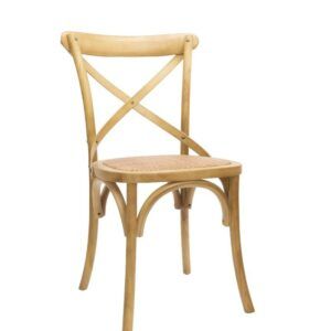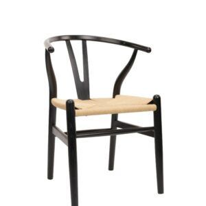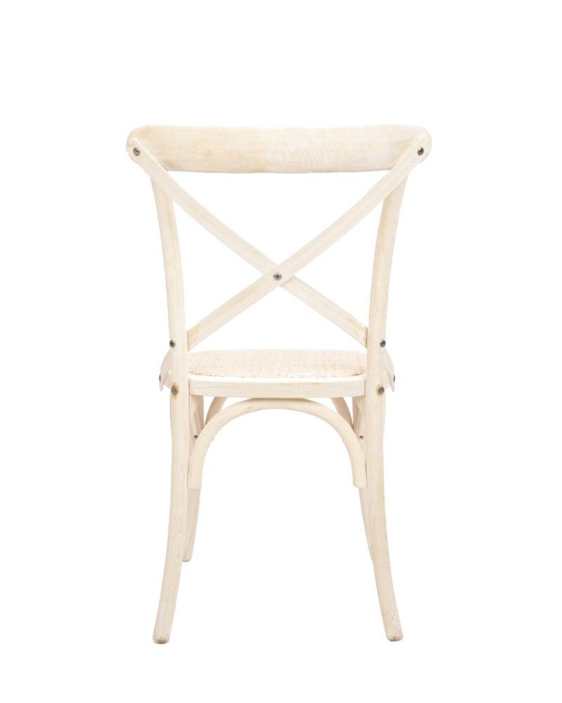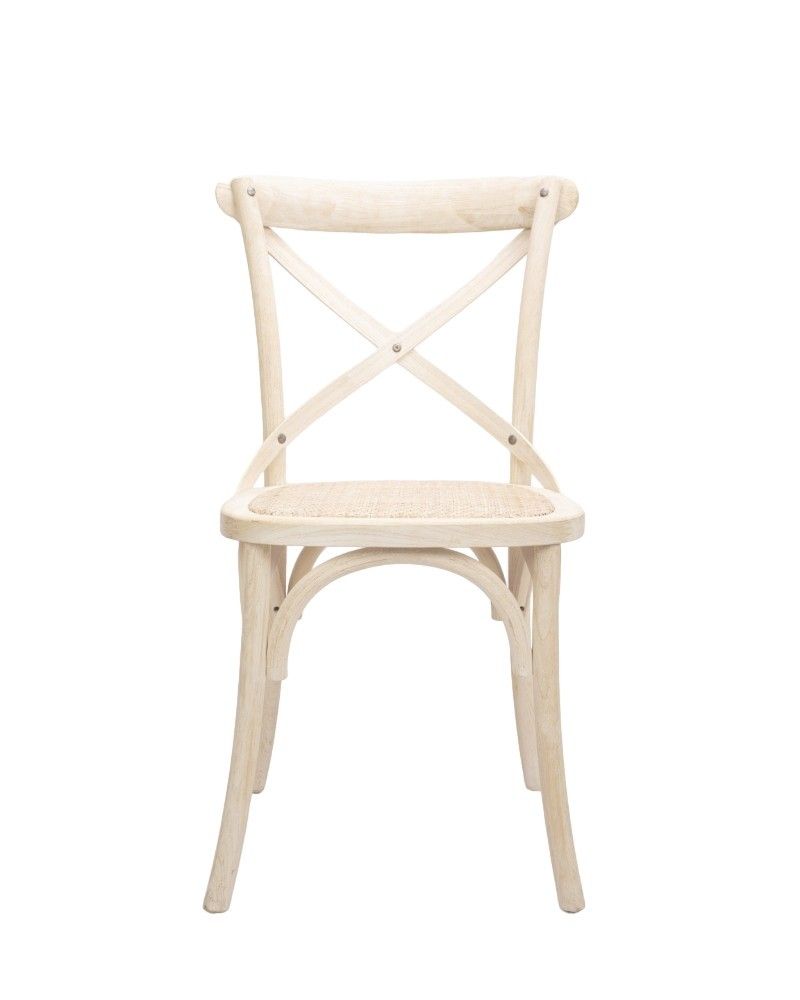 Silla de madera de olmo en color blanco y ratán natural de estilo escandinavo.