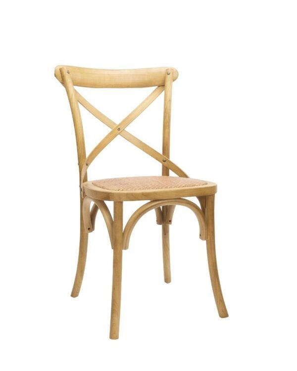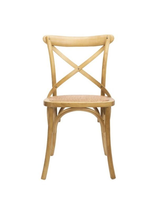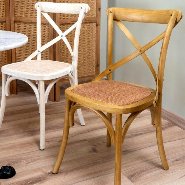 Silla de madera de olmo, en su color natural y ratán de estilo escandinavo.