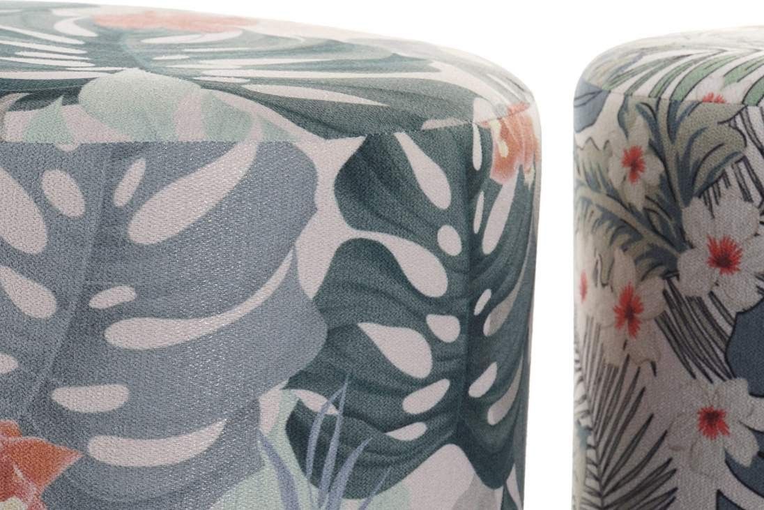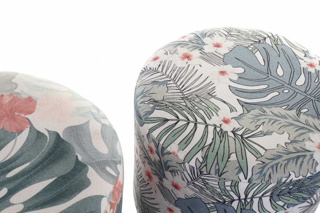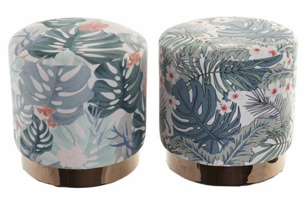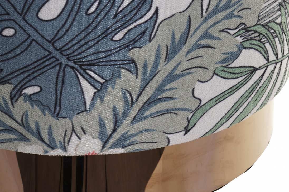 Taburete con estampado tropical y borde metálico dorado. (1 unidad)