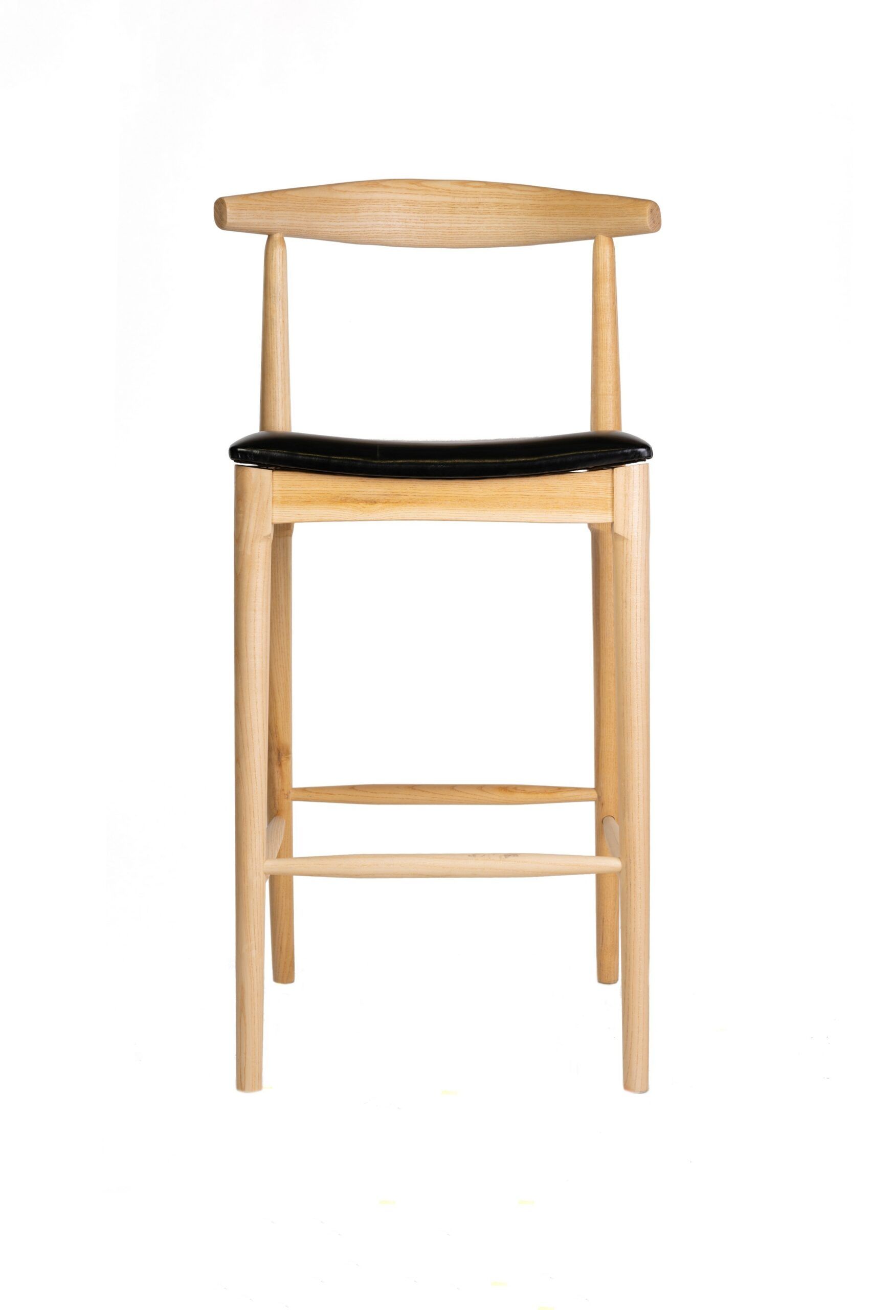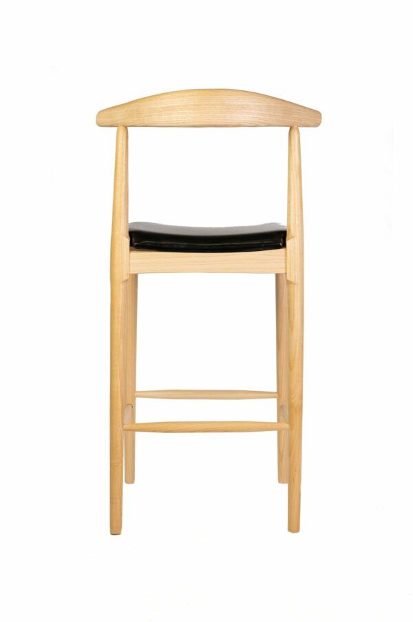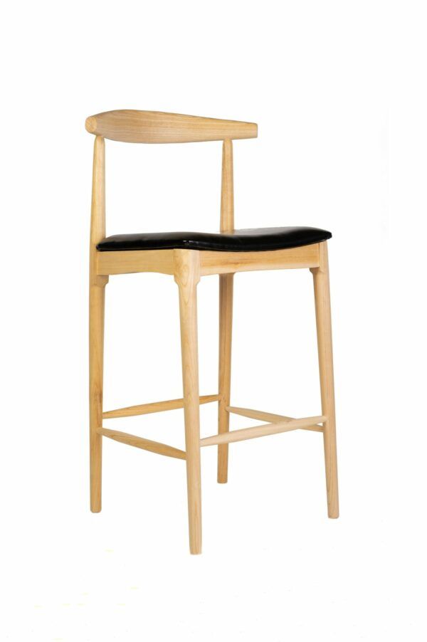 Taburete de madera de olmo con asiento de polipiel resistente al agua, perfecto tanto como para interior como para exterior.