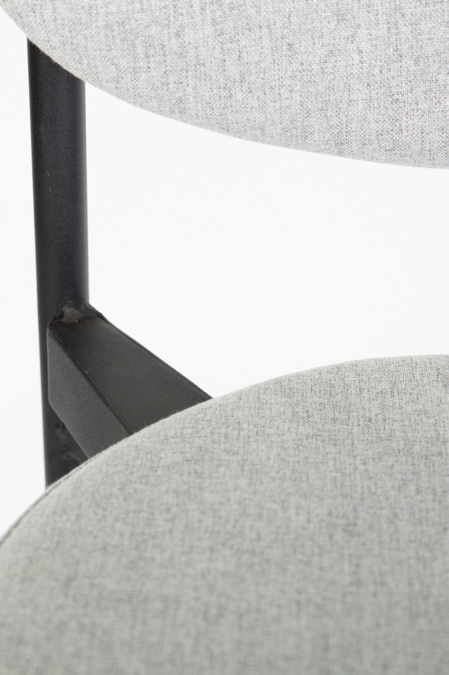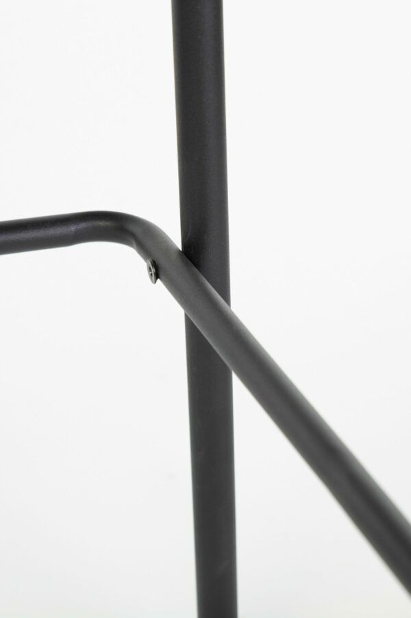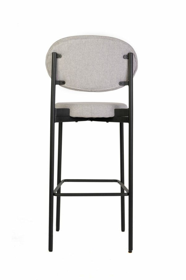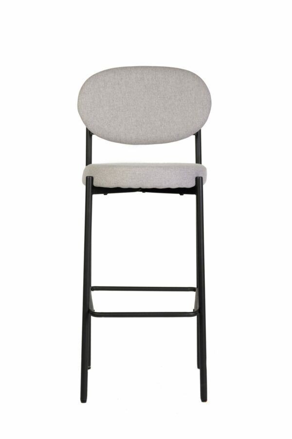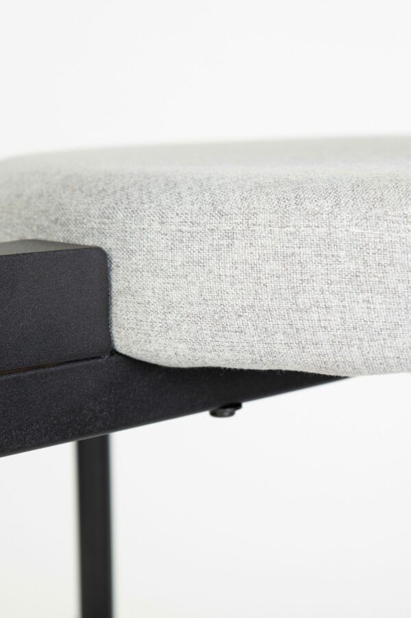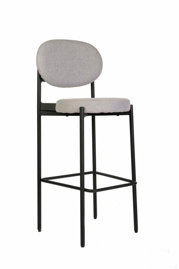 Taburete de tela con placa interior de madera con patas metálicas, pintura en polvo.