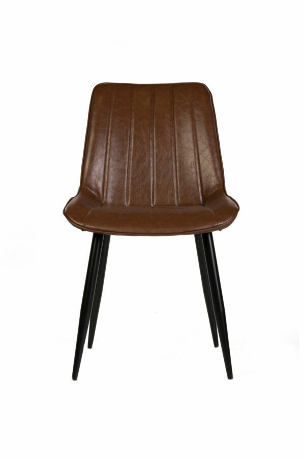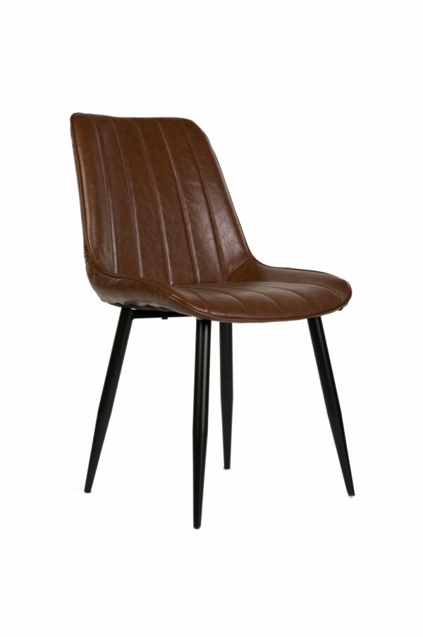 Silla polipiel con placa interior de madera con patas metálicas, pintura en polvo.