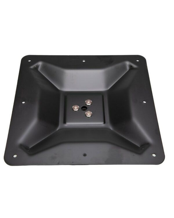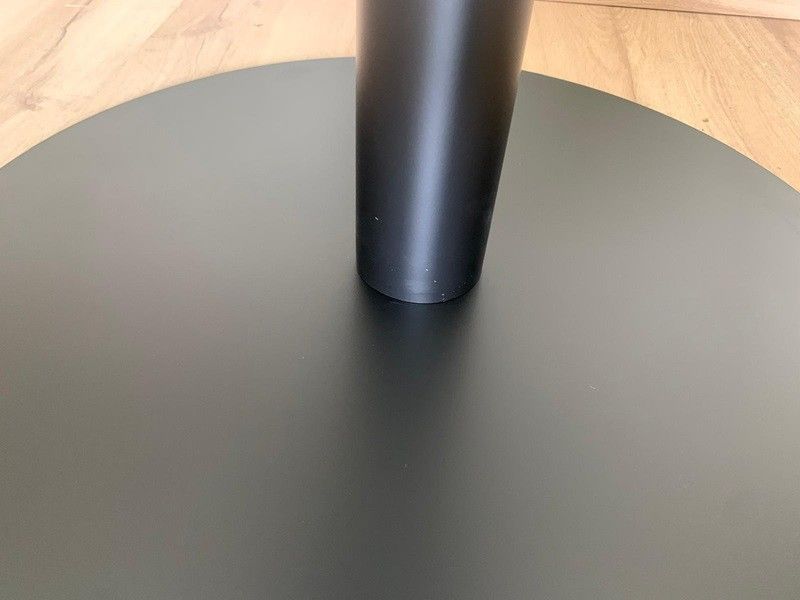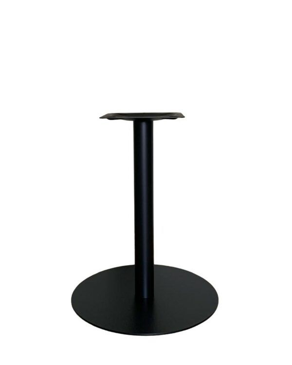 Estructura de mesa de metal negro con la base redonda lisa ampliada para ofrecer más estabilidad. Ideal para tapas de 80 a 100 centímetros.