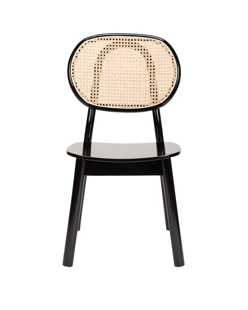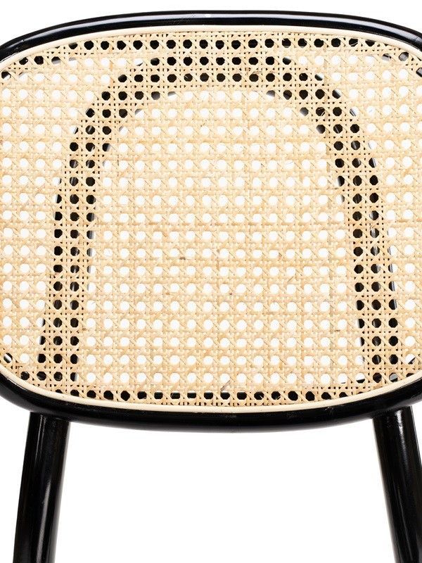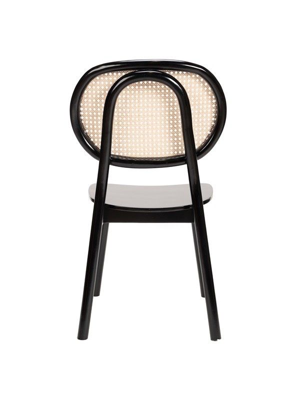 Silla de comedor de madera en color negro con respaldo de ratán.
