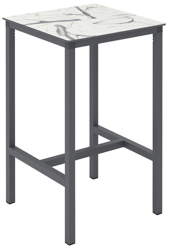 Mesa alta para exteriores con uniones de codos de poliamida.