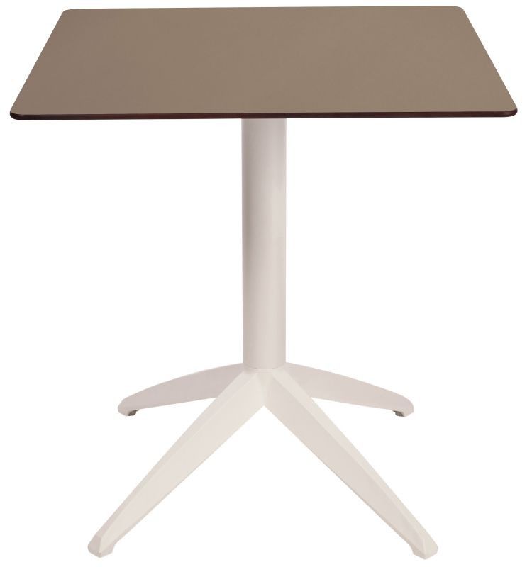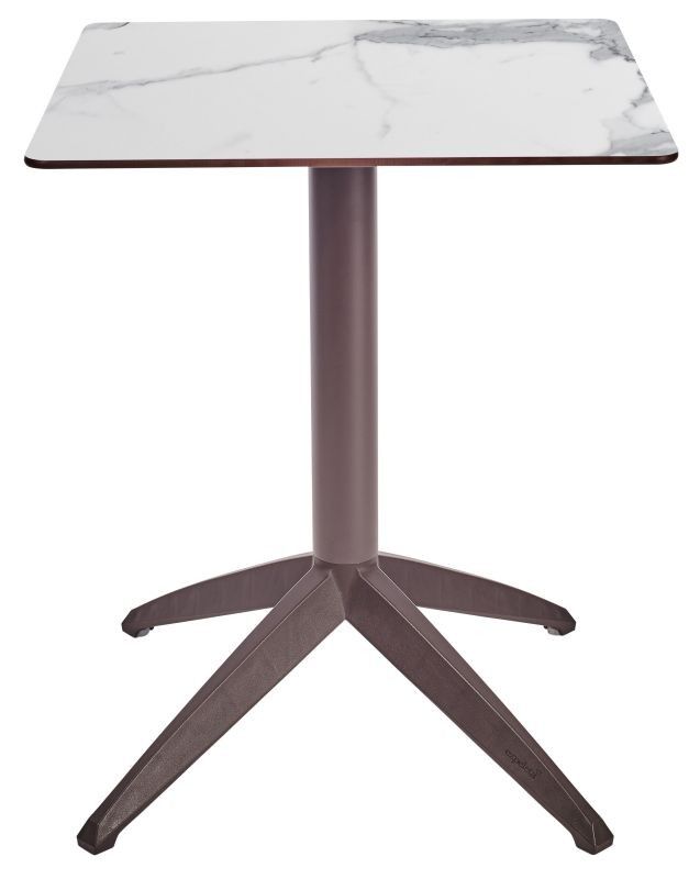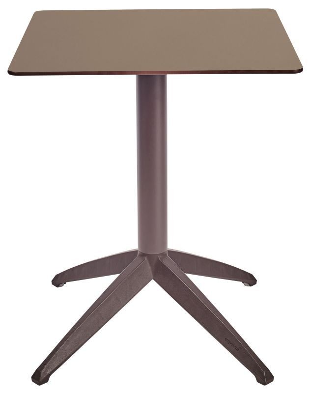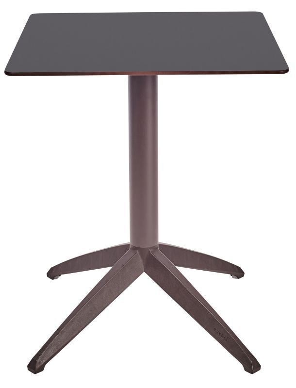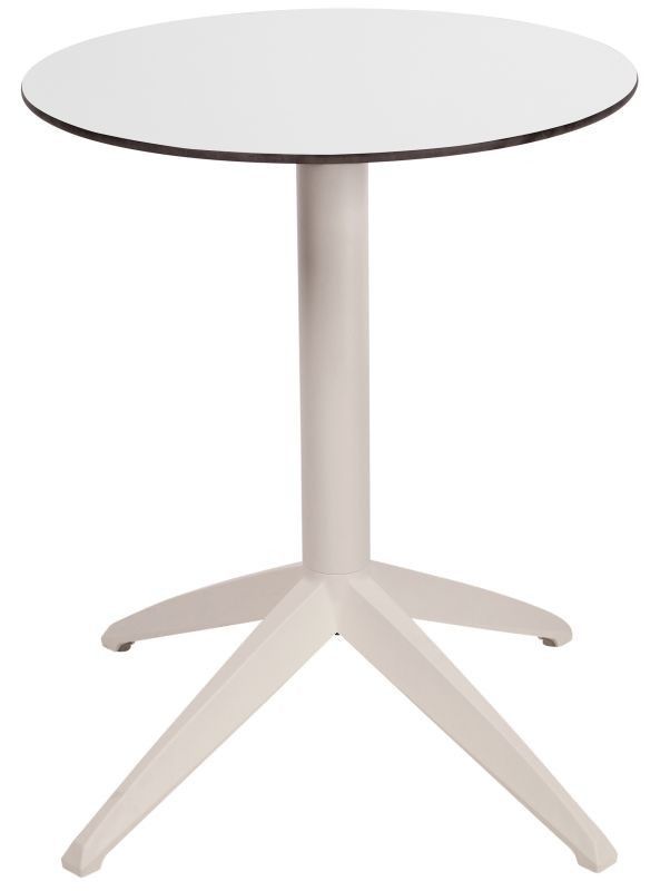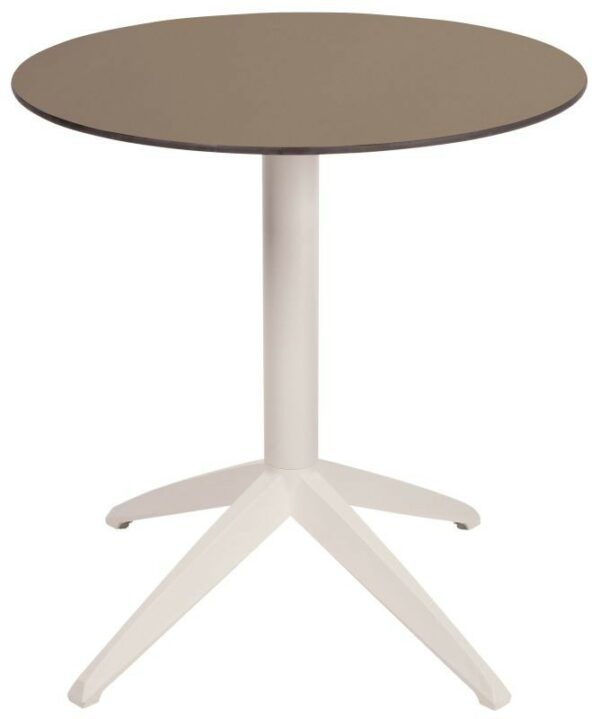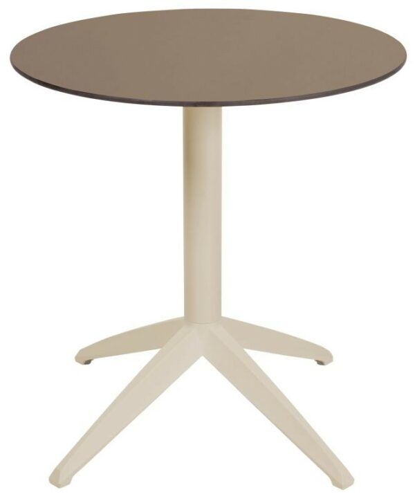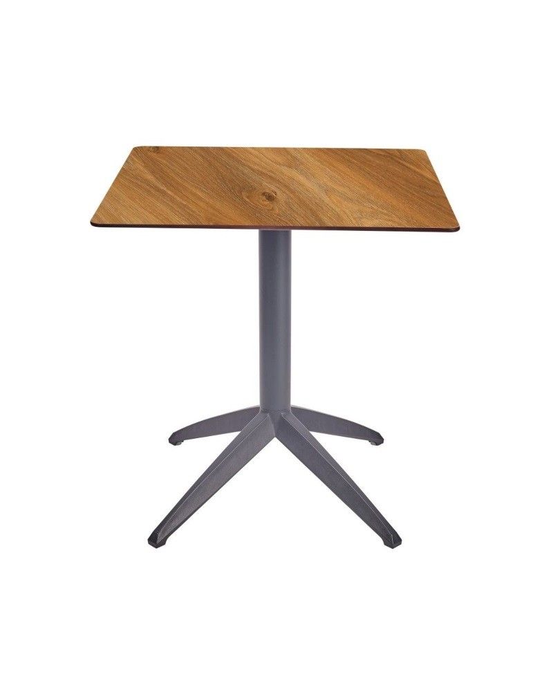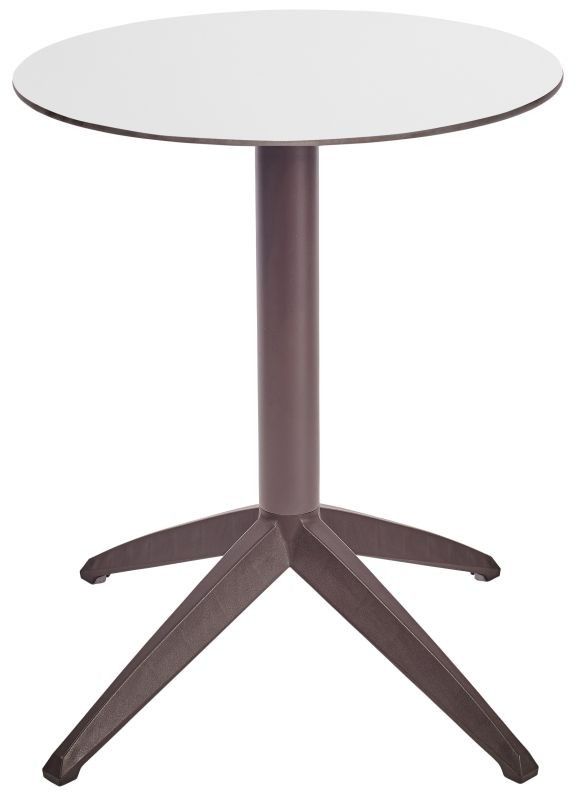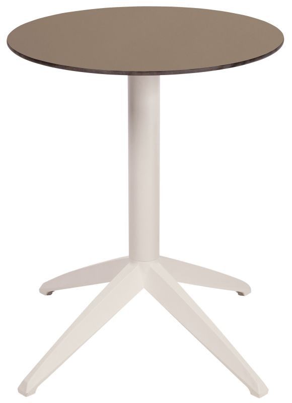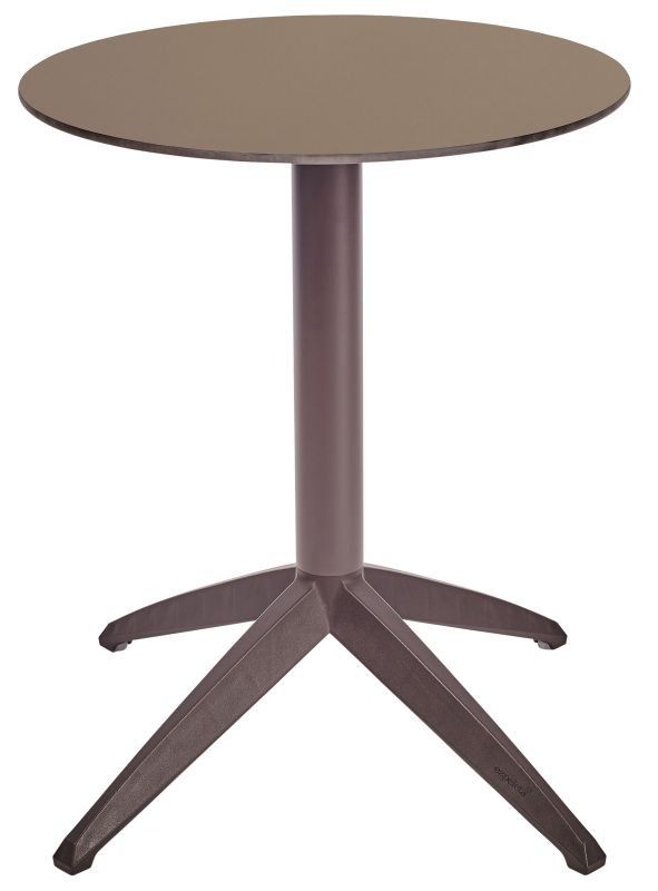 Mesa abatible para interiores y exteriores con tablero compacto y estructura de aluminio lacado.